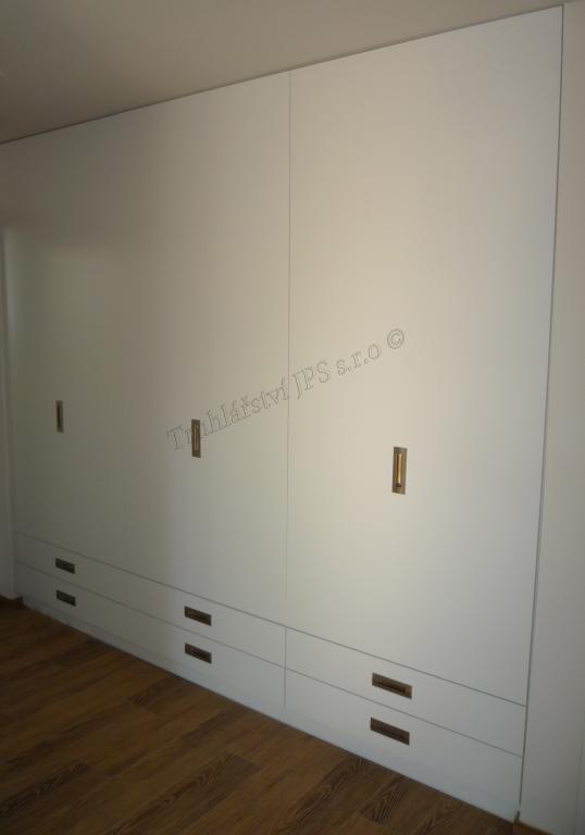 Námi vyráběné vestavěné skříně mají samozřejmě i boky, dno a strop, a proto ani větší nerovnost zdí, podlahy nebo stropu nezpůsobí, že dveře budou křivě usazené.